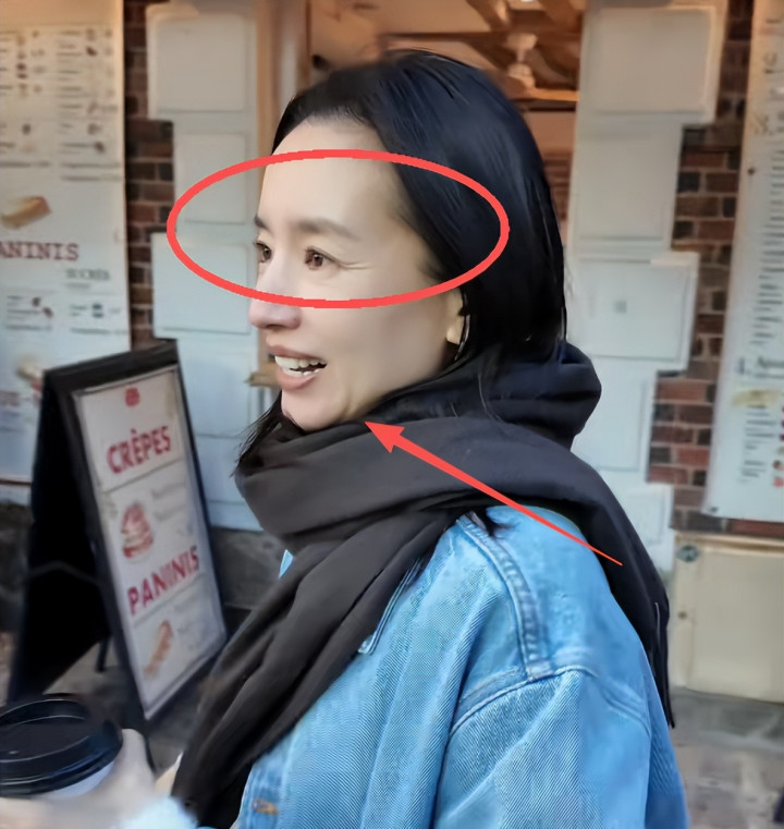 遇到路人打招呼时,董洁的反应非常仓促,不经意之间,脸上的皱纹再次显现了出来。